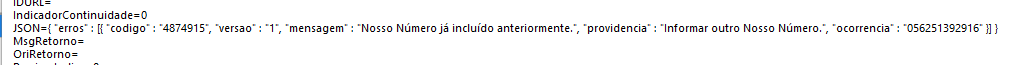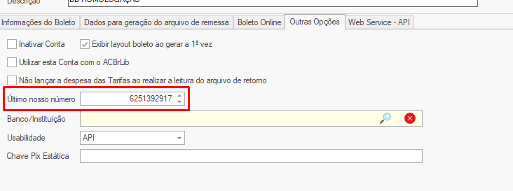 - No caso ao realizar a tentativa de registro de um boleto pode ser retornado que o nosso número já foi utilizado, será necessário informar no ultimo nosso número a informação retornada na ocorrencia ignorando os 2 primeiros digitos.