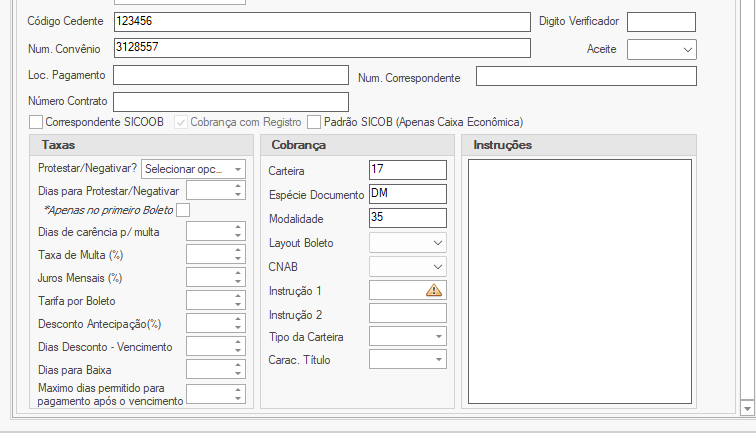 - Quantidade de dias para protesto ou negativação: (o cliente que decide)