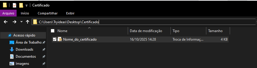- Salve o Certificado digital A1 do cliente em alguma pasta no computador (importante não deixar nenhum espaço no nome do arquivo do certificado);