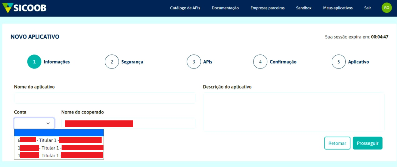 Confirme os dados cadastrados na aba Confirmação e finalize o processo, será exibido a mensagem de sucesso e você deverá voltar a aba Meus Aplicativos;