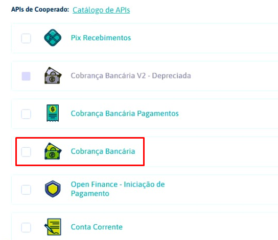 Siga para a aba APIs e selecione a opção Cobrança Bancária e clique em Prosseguir: