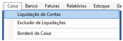 Para podermos estar utilizando este recurso de Fatura Status, vamos estar clicando em Caixa / Liquidação de Contas.