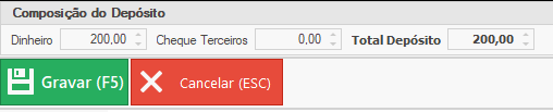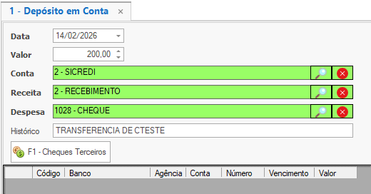 Opção F1 - Cheques Terceiros, para caso for depositar os cheques que estão registrados no caixa.
