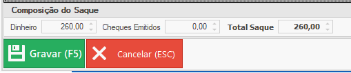 Ao preencher os dados, logo abaixo vamos ter algumas opções, sendo as Composições, para conferência de valores em Dinheiro, Cheque e Total Saque, para conferência e analise, se o valor esta correto ou não, para confirmar a operação.