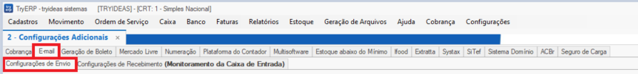 Selecione a aba Configurações de Envio.