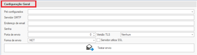 Campo Descrição Exemplo Pré configurados provedores pré-definidos (Gmail, etc.), selecione aqui. Gmail Servidor SMTP Endereço do servidor de envio de e-mails. smtp.gmail.com Endereço de e-mail Conta de e-mail que fará o envio. exemplo@empresa.com.br Senha Senha da conta de e-mail ou senha de aplicativo. (senha) Porta de envio Porta usada pelo servidor SMTP. 587 (TLS) ou 465 (SSL) Versão TLS Selecione a versão de segurança usada. TLS 1.2 (recomendado) Servidor utiliza SSL Marque se o servidor usa criptografia SSL. ✅ Marcado Forma de envio Tecnologia usada para envio. .NET (recomendado) Configurações Específicas por Assunto