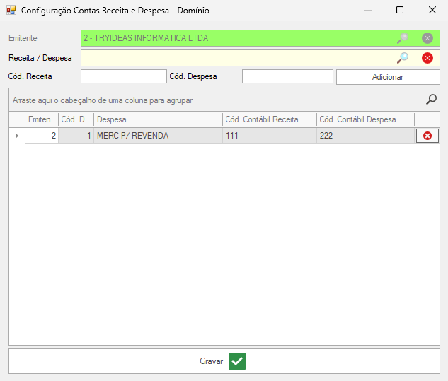 Código contábil da empresa no Domínio (consultar com seu contador qual utilizar).