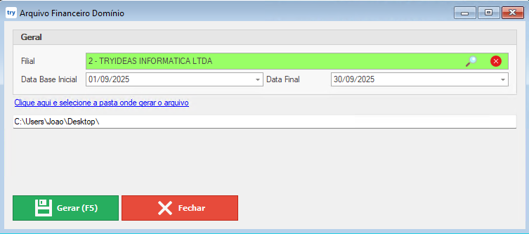 Configuração e Geração do Arquivo Financeiro Domínio