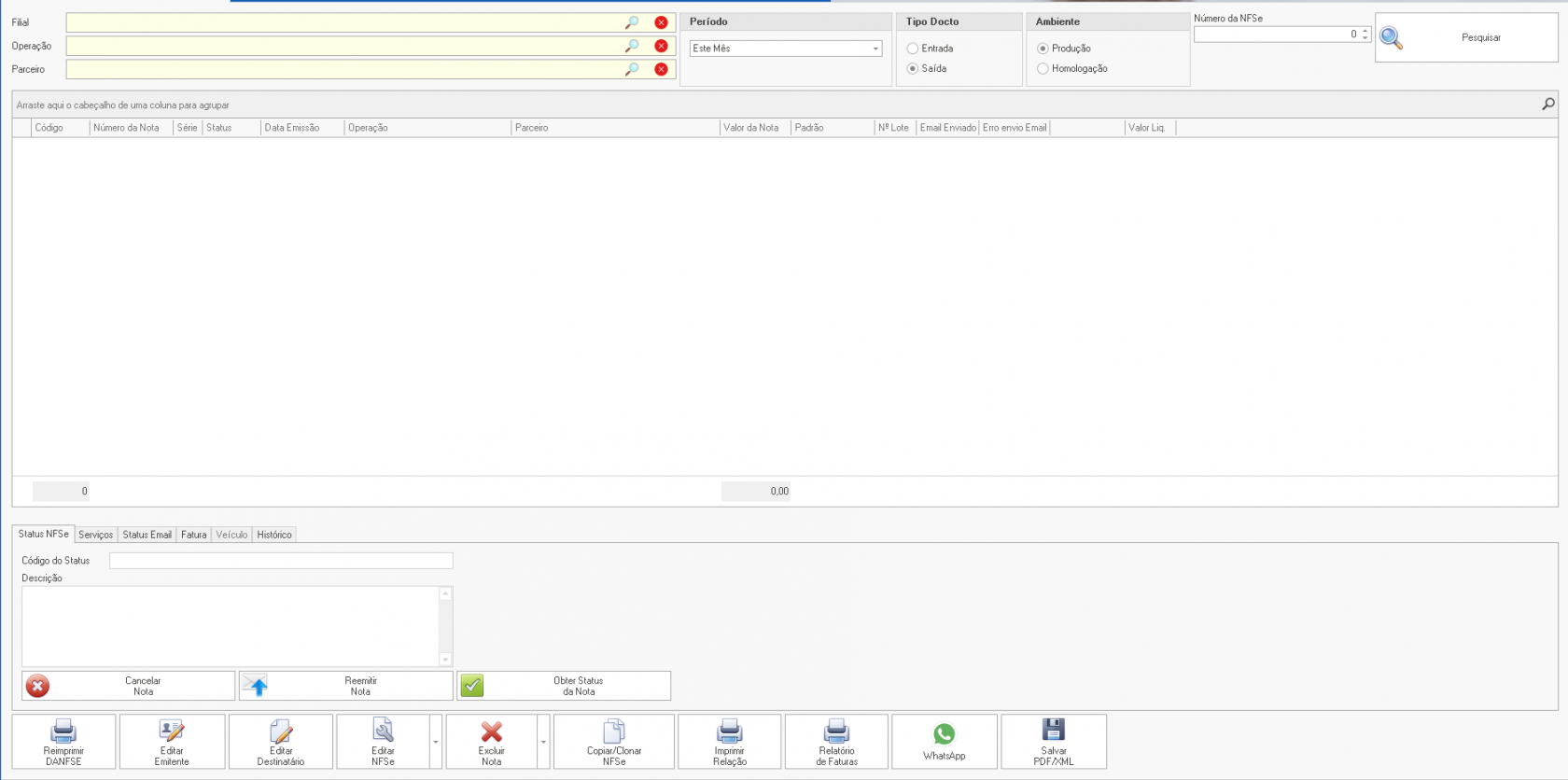 Ambiente: Possibilita filtrar entre o ambiente de homologação (testes) e produção (emissão real).