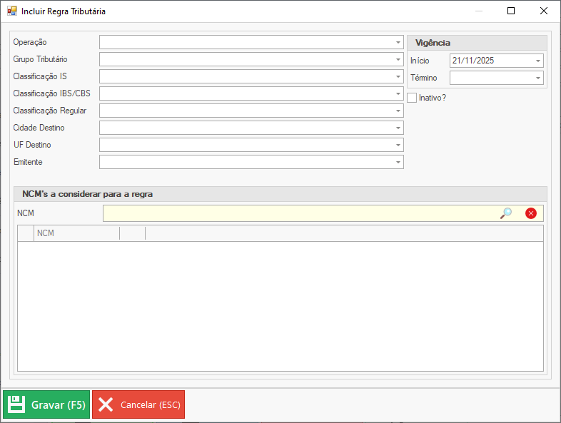 Término: data final da regra (pode ser deixado vazio caso seja por tempo indeterminado).