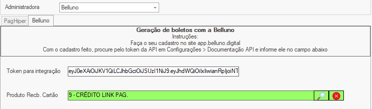 Configurar uma administradora de cartão vinculada à conta bancária Belluno;