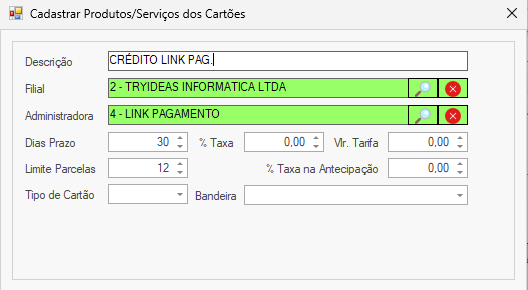 Configurar um produto de cartão vinculado a admistradora, com seus prazos e taxas (necessário vincular à conta bancária).