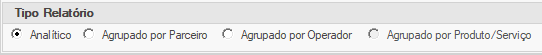 Por fim o Tio do Relatório poderá selecionar uma opção de relatório analítico ou agrupado por Parceiro, Operador e Produto/Serviço.