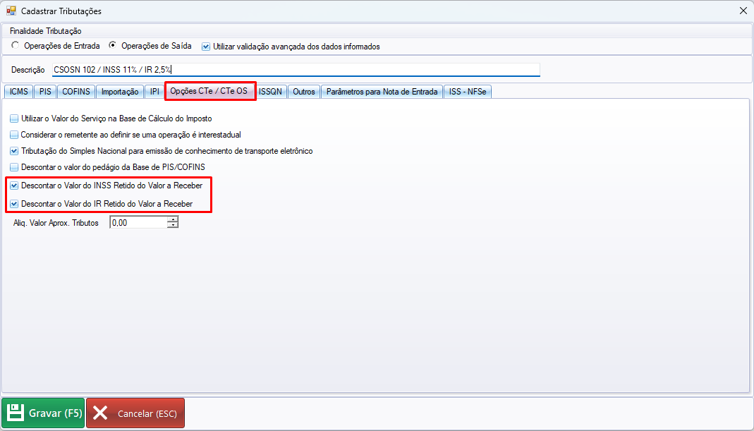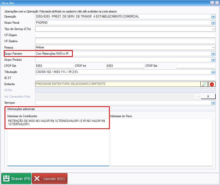 Configurações de Tributação para Emissão de Documentos com INSS/IRRF Retido